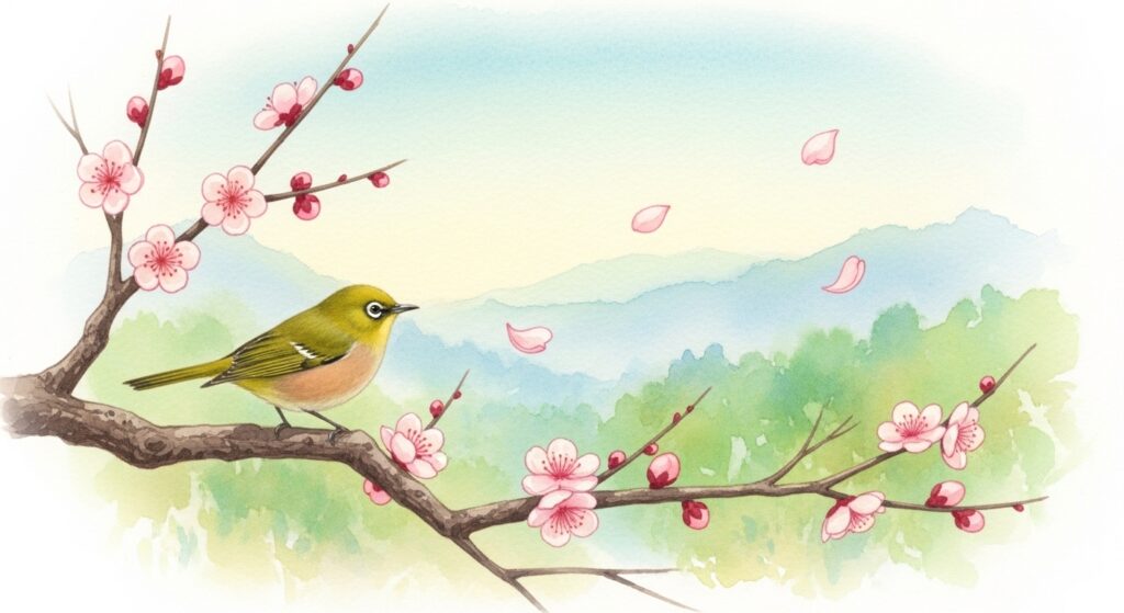 • 鶯(うぐいす) :「春告鳥(はるつげどり)」の別名通り、初音(その年初めての鳴き声)は特に珍重されます。