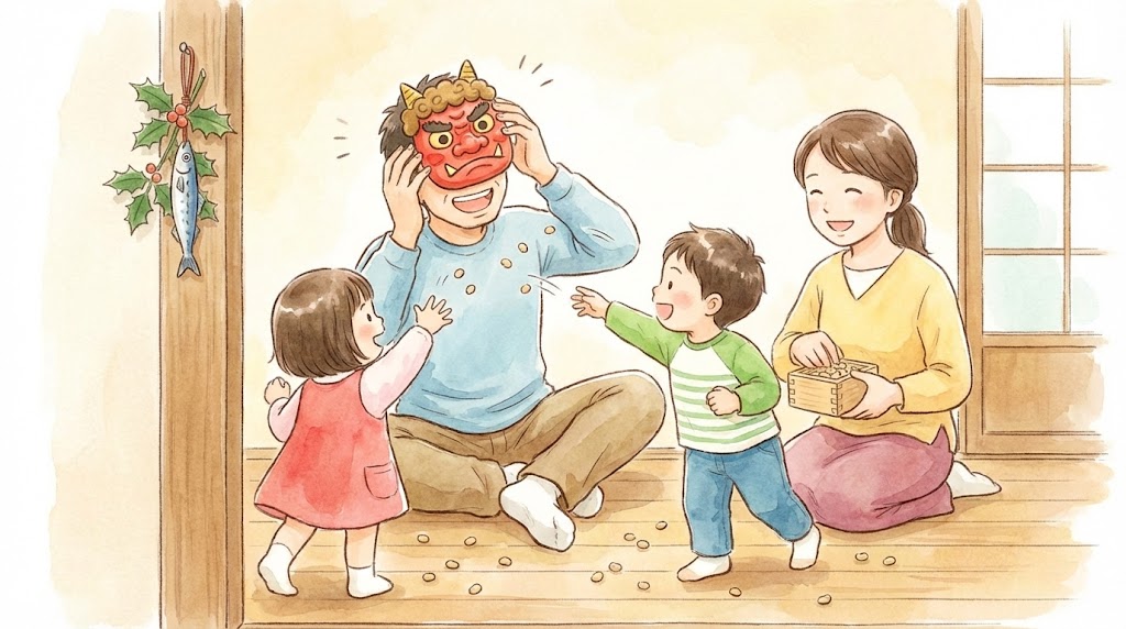 豆まきの情景は、視覚的な要素だけでなく、聴覚的な要素も豊かです。